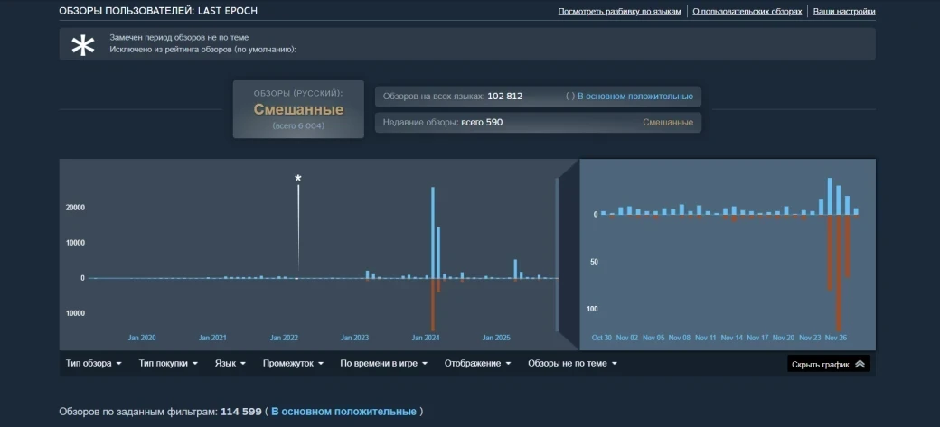 Поэтому аудитория Last Epoch достала вилы и факелы и направилась в Steam. За последние пару дней на игру оставили около 300 негативных обзоров, что подбило рейтинг до «в основном положительного» (и «смешанного» в России). Недовольные фанаты больше не советуют Last Epoch к покупке, указывают на «нарушенные обещания» и жалуются на отсутствие нормальных фиксов давних проблем.