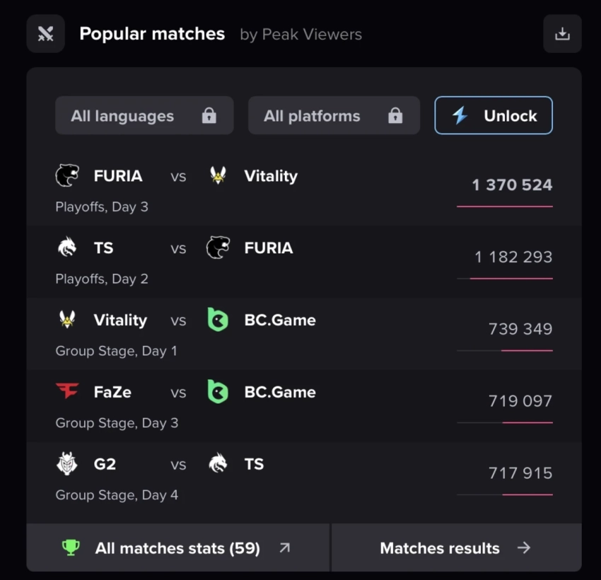 FURIA vs Team Vitality — 1 370 524 зрителей.