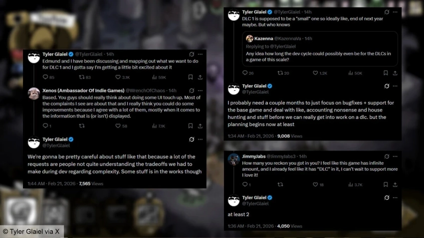 По словам Глейеля, дополнение задумывается относительно небольшим, поэтому в идеальном сценарии его релиз может состояться к концу следующего года. Однако точных сроков нет: сначала разработчикам предстоит сосредоточиться на поддержке базовой версии — исправлении ошибок, балансировке и технических задачах. Он также намекнул, что в перспективе у игры может появиться как минимум два DLC.