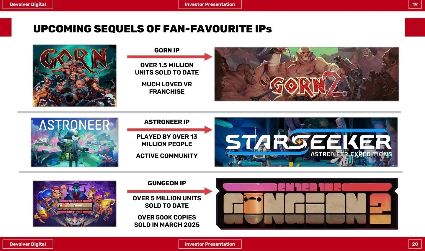 Самой успешной консолью для Devolver Digital стала Nintendo Switch: на ней было раскуплено более 9 миллионов копий игр издательства. И к релизу на Nintendo Switch 2 уже готовятся три новых проекта: Starseeker: Astroneer Expeditions, Enter the Gungeon 2 и Human Fall Flat 2.