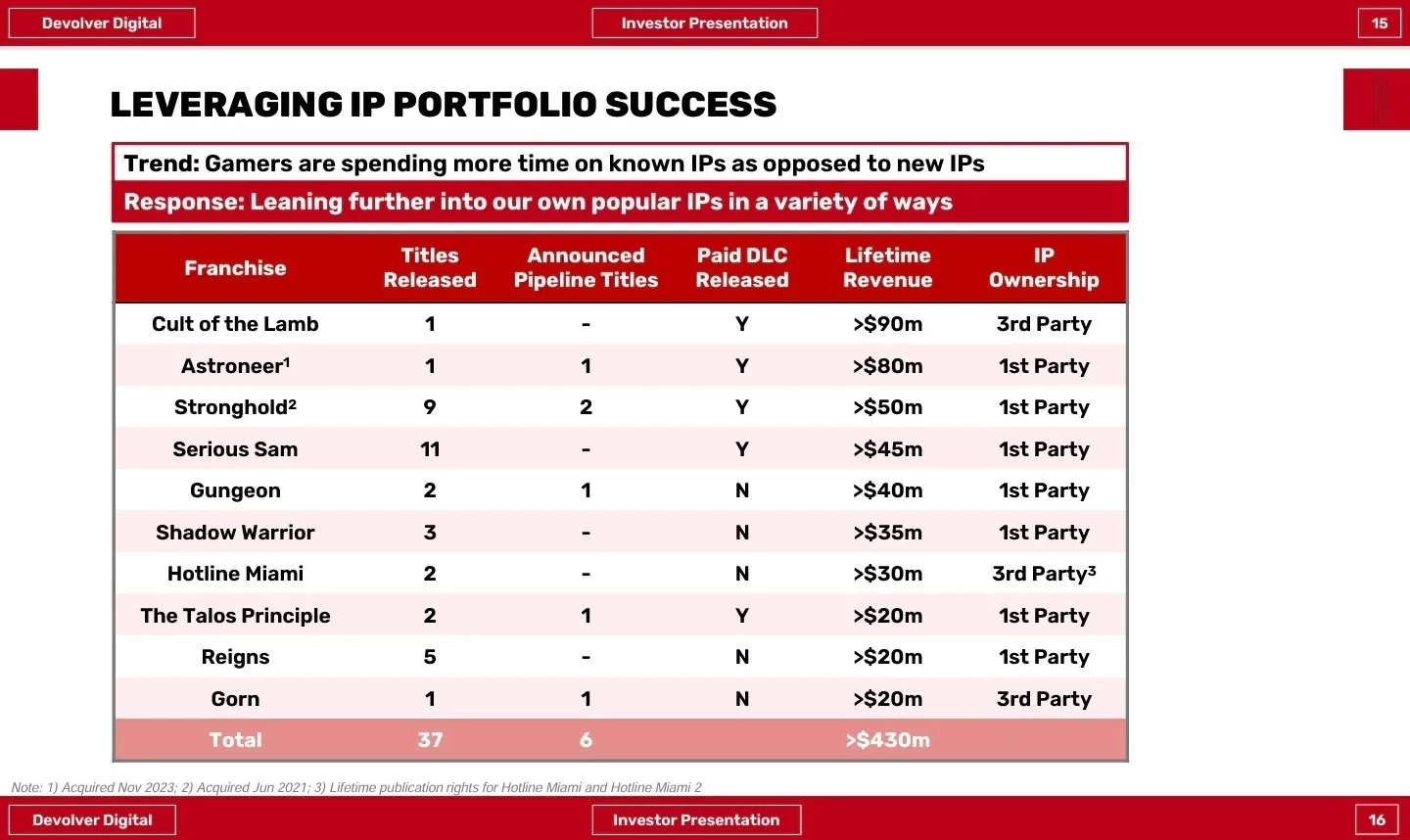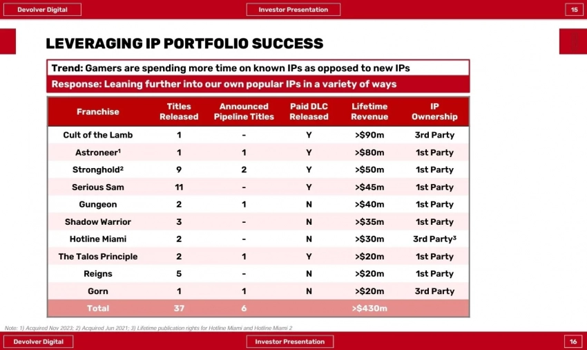 В презентации для инвесторов компания сообщила, что наиболее успешной игрой издательства стал симулятор Cult of the Lamb: он вместе с дополнениями принёс более 90 миллионов долларов прибыли.
