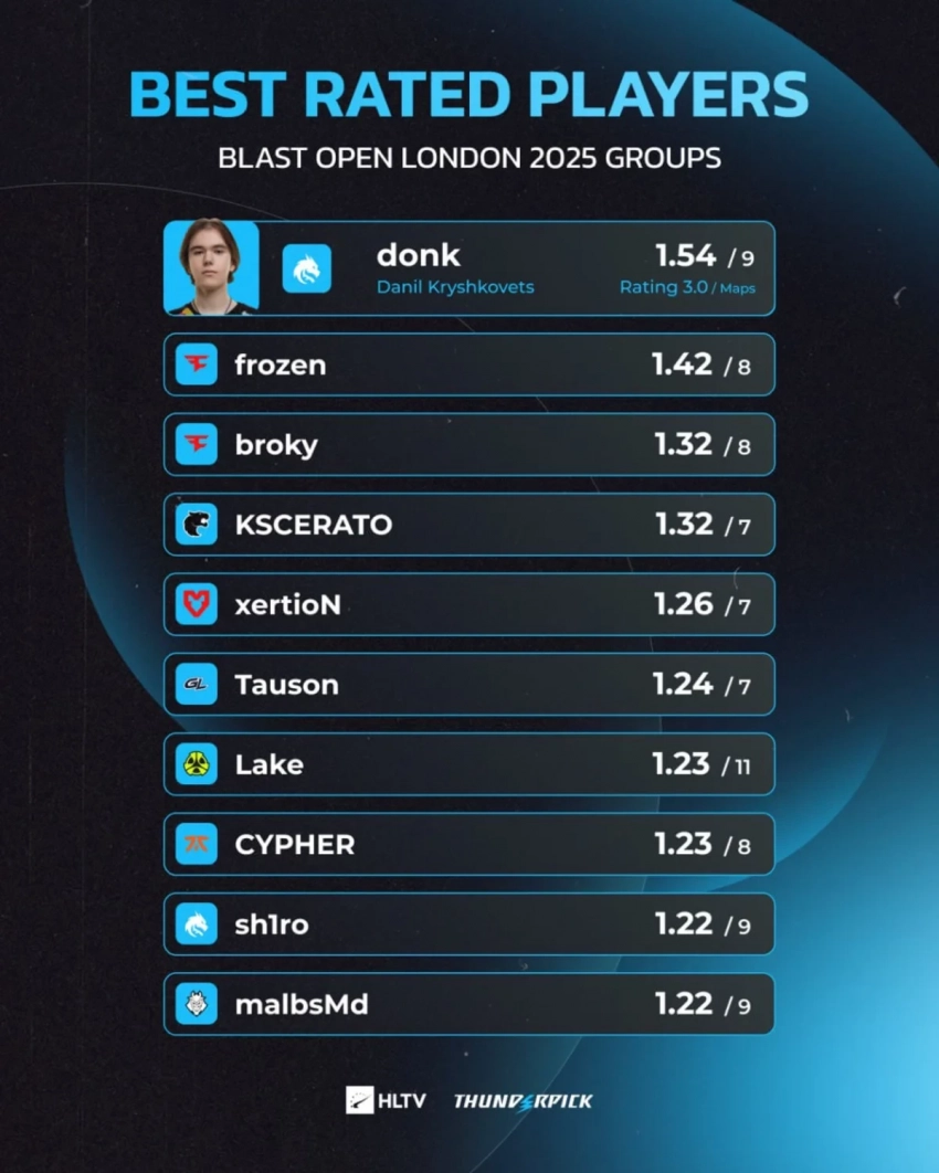 Главные новости » Эксклюзив » Donk возглавил рейтинг квалификации BLAST Open Fall 2025 по Counter-Strike 2