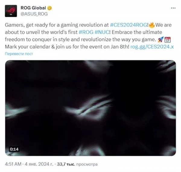 Минувшим летом Intel объявила о прекращении инвестиций в линейку продуктов NUC и передаче всех связанных с ней активов ASUS. Тайваньский производитель взял на себя ответственность за поддержку существующих систем и возглавил разработку продукции NUC следующего поколения. Возникли предположения, что ASUS пожелает включить одну из новых моделей в линейку ROG, и теперь компания на своей странице в соцсети X подтвердила эту информацию.