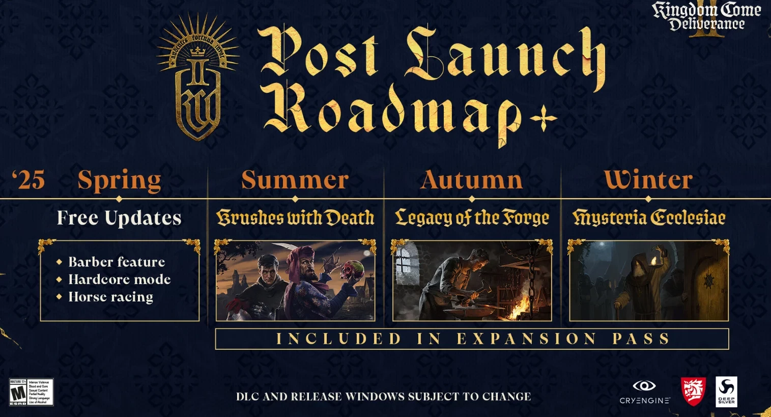 Неизвестно, появятся ли все новинки в одном обновлении, либо будут выходить поочерёдно. Однако после них настанет черёд тех, кто не поскупился на приобретение Expansion Pass. До конца года игроки Kingdom Come: Deliverance 2 должны увидеть следующие платные дополнения: